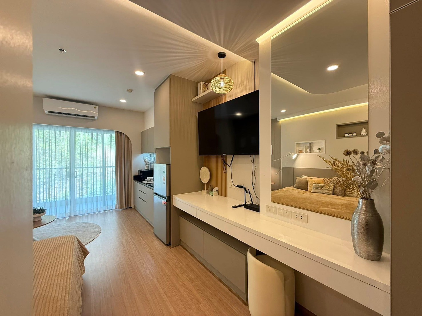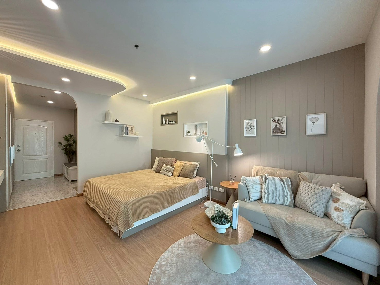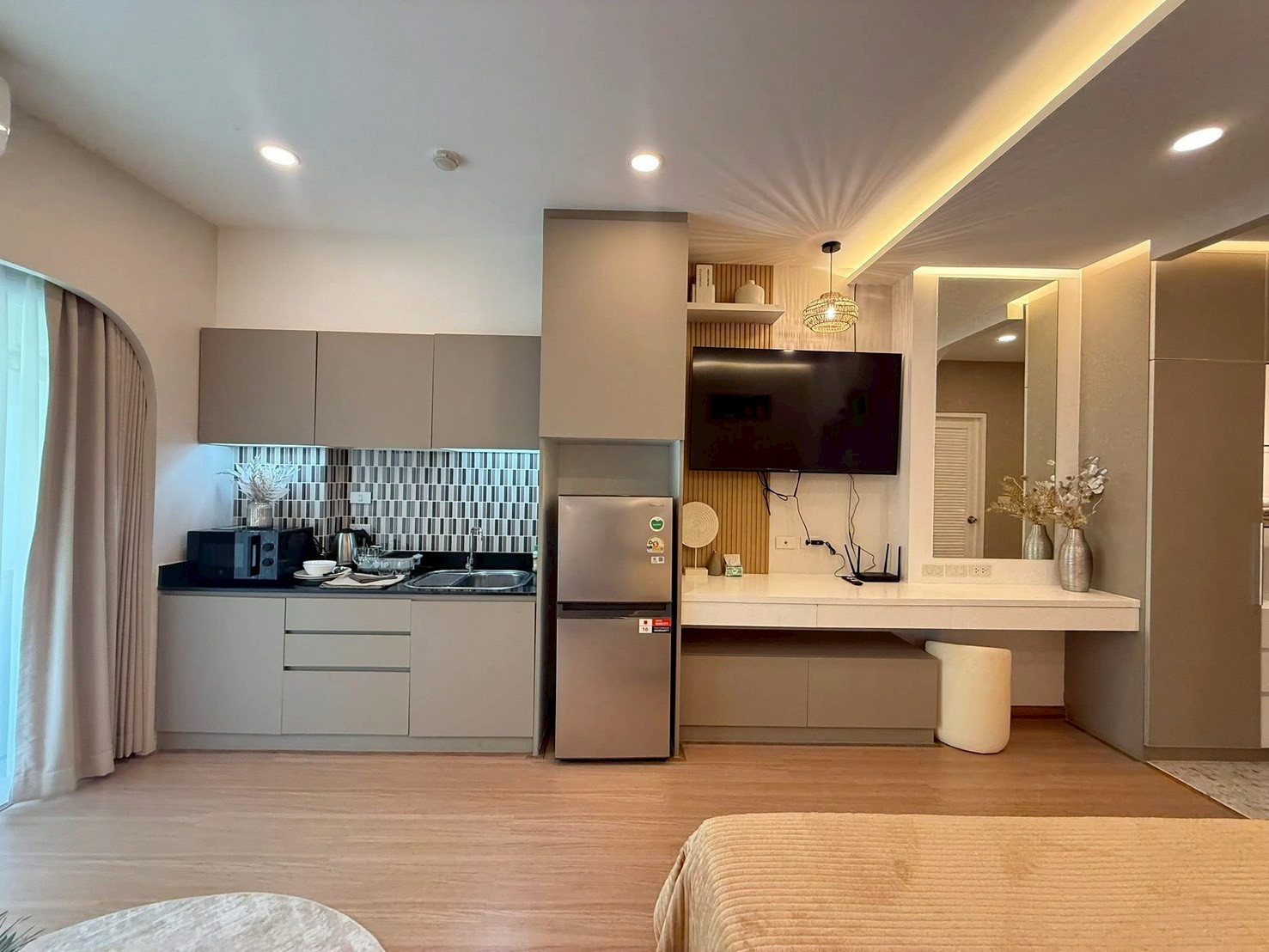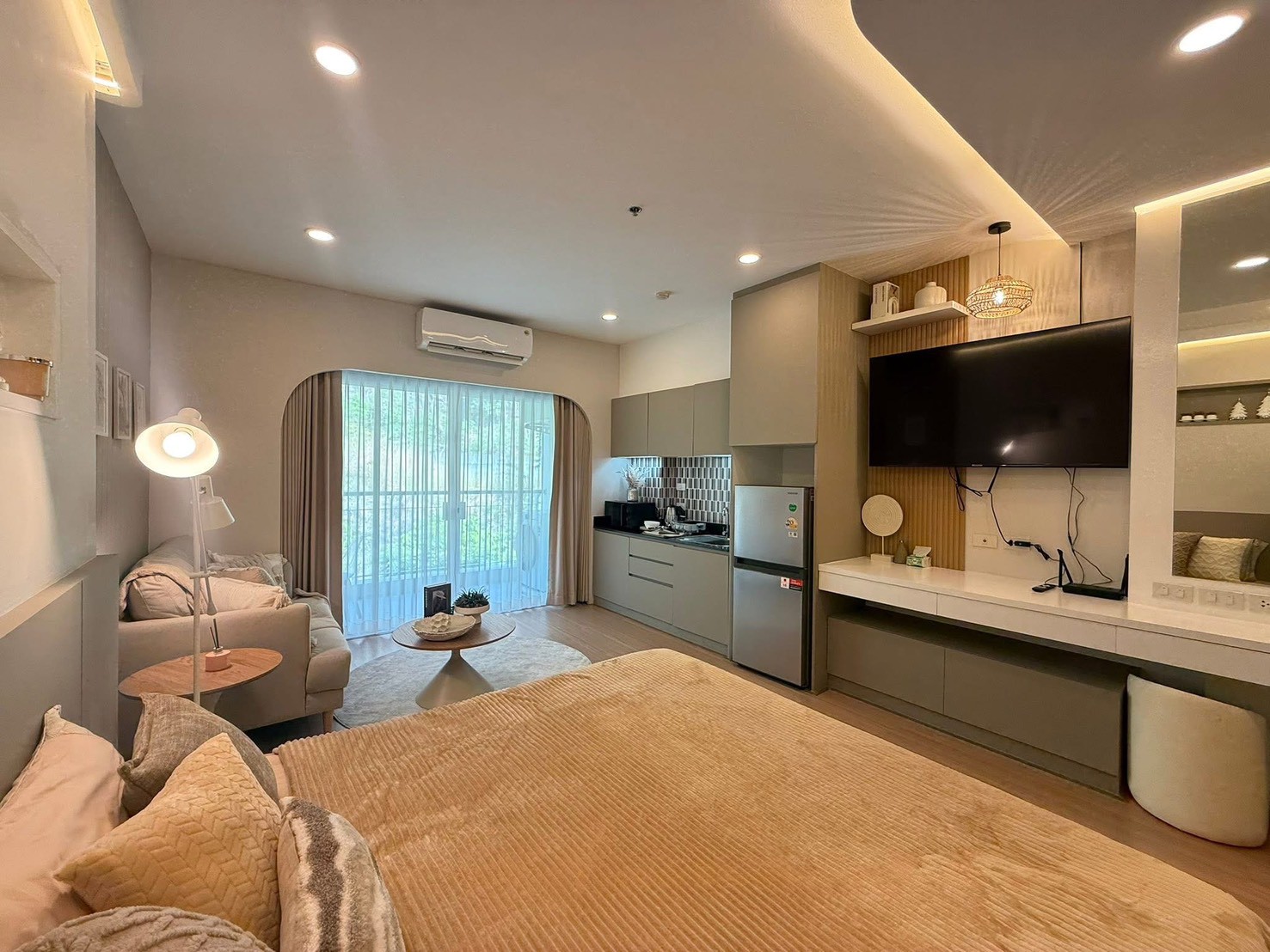 Fully furnished with a warm, minimal style that feels cozy and comfortable.