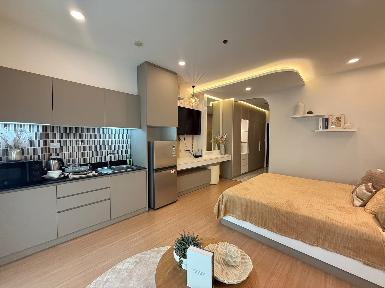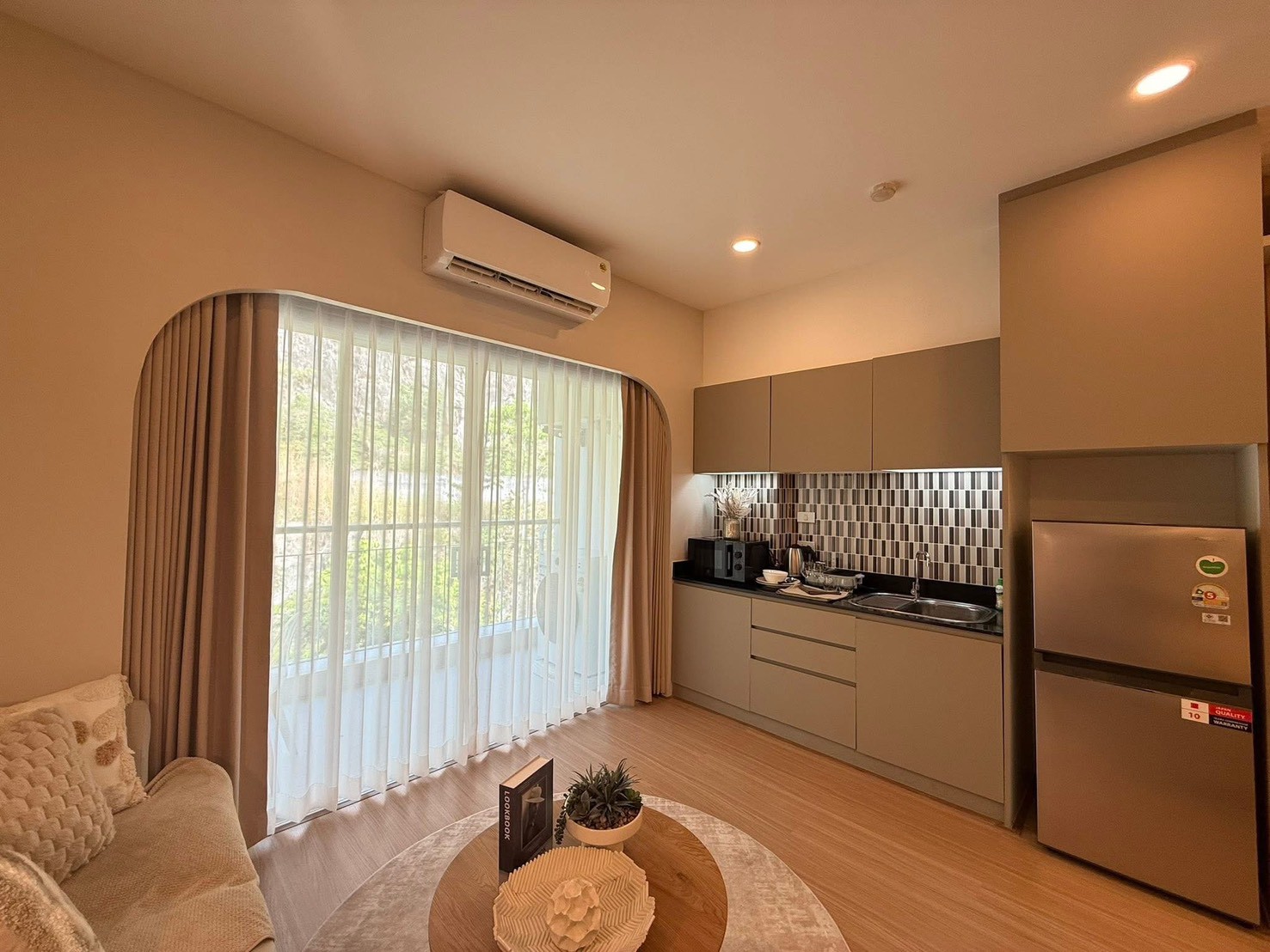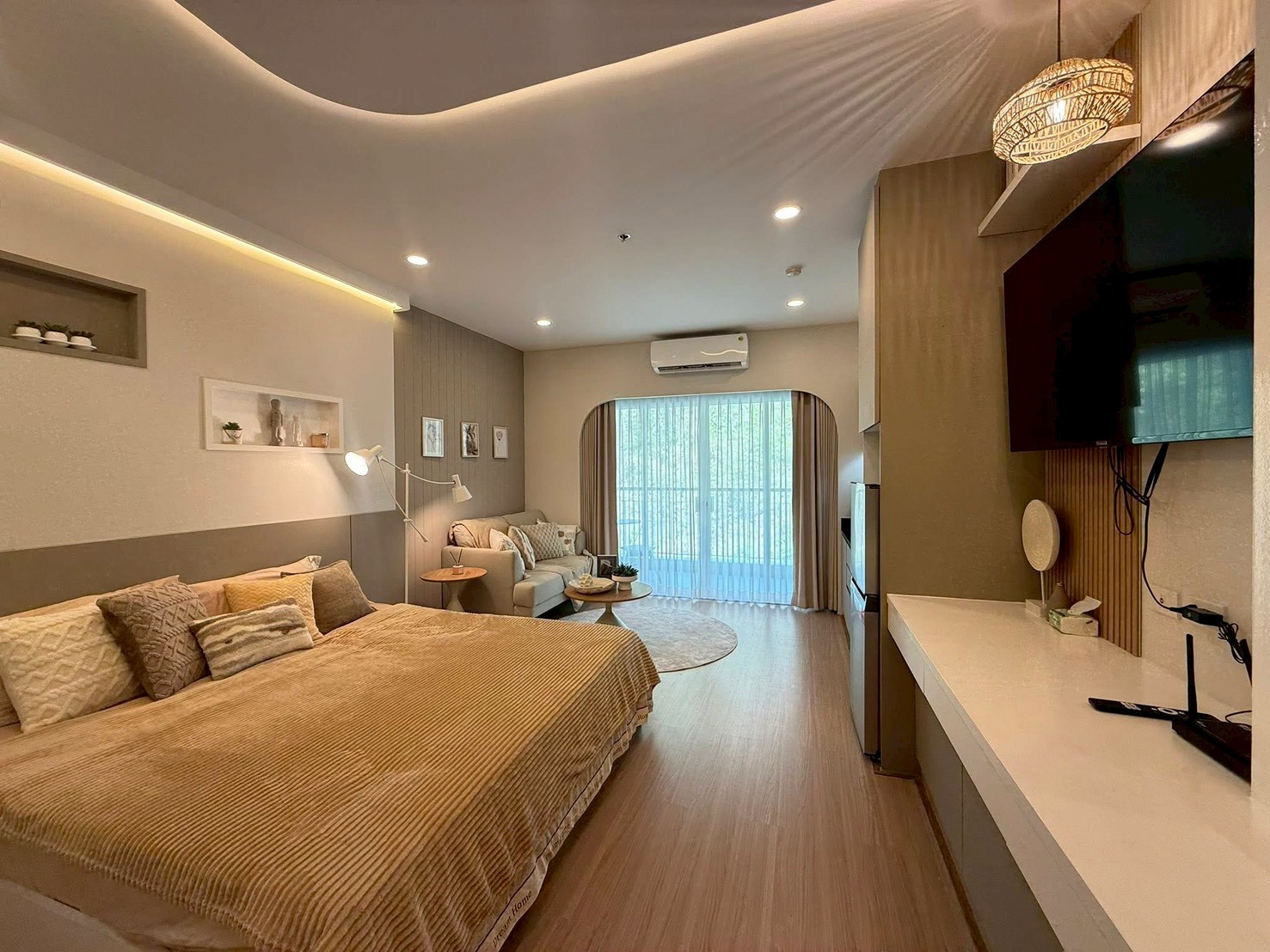 Fully furnished with a warm, minimal style that feels cozy and comfortable.